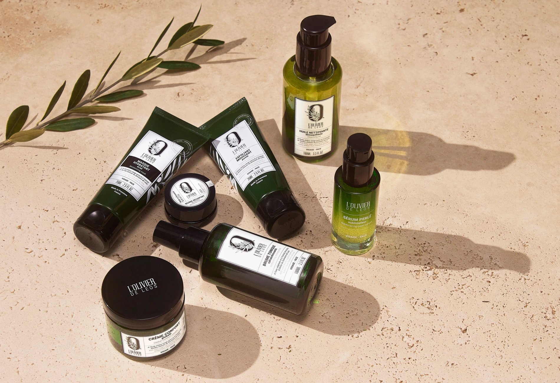 Formulés à base d'huile, de feuilles et de noyaux d'olivier, les produits offrent des textures ultra-sensorielles, à la fois efficaces et respectueuses de votre peau comme de la nature, et sont tous fabriqués en Provence.