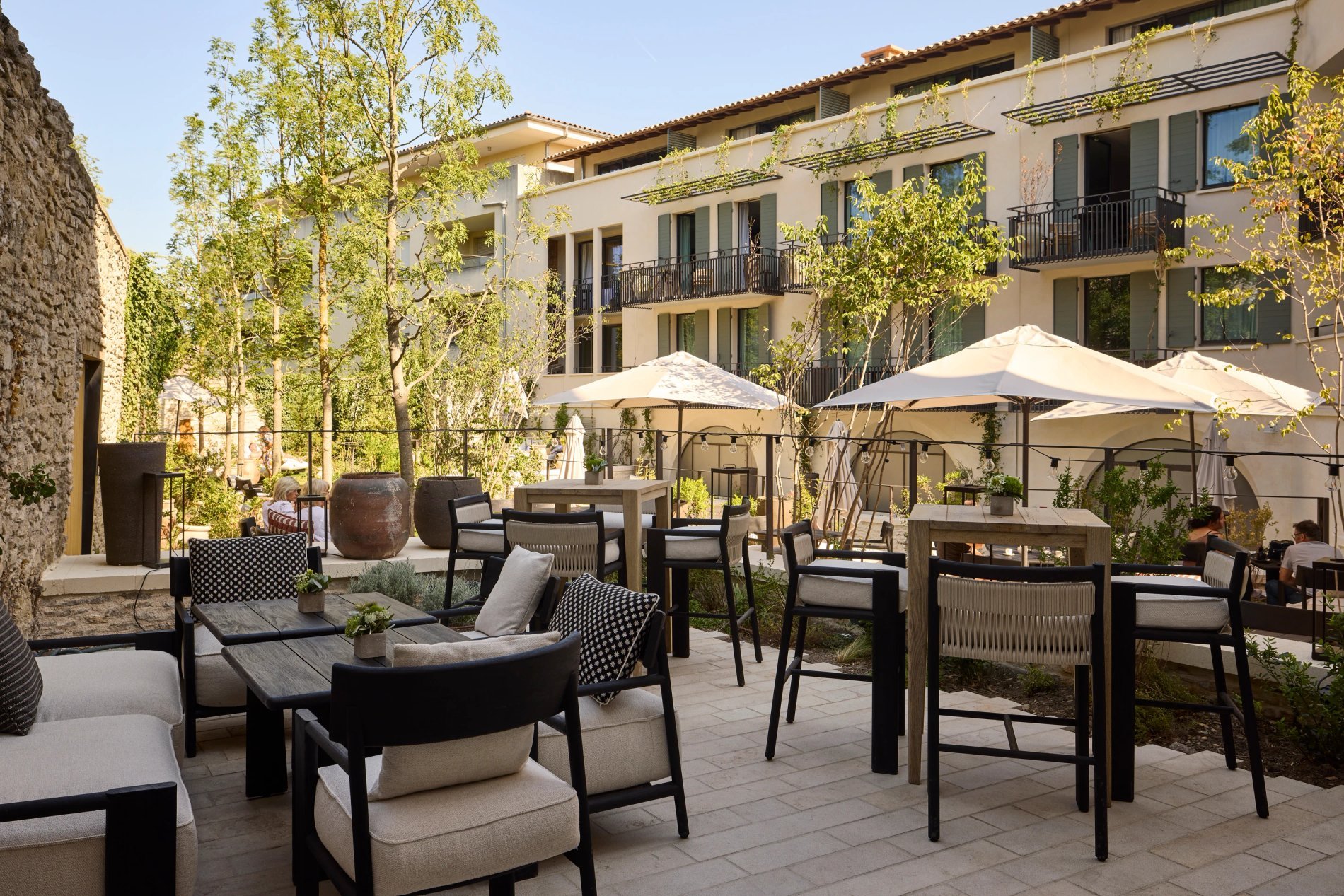 Ce bel espace extérieur, ombragé et élégant, est parfait pour souffler entre deux sessions de travail.
